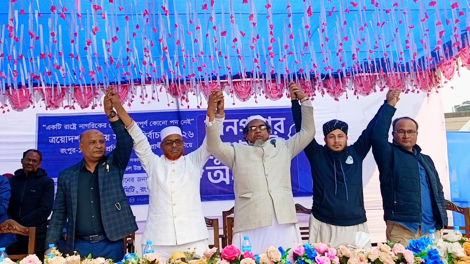 এছাড়া অনুষ্ঠানে বাংলাদেশের সমাজতান্ত্রিক দল-মার্কসবাদী’র আহসানুল আরেফিন (কাঁচি) ও ইসলামিক ফ্রন্টের প্রার্থী মো. আনাস (চেয়ার) বক্তব্য রাখেন। তারা সংস্কার, বিচার ও সুশাসন নিশ্চিতকরণসহ বৈষম্যমুক্ত জবাবদিহিতা মূলক রাষ্ট্র ব্যবস্থার মাধ্যমে রংপুরকে এগিয়ে নেয়ার কথা বলেন।