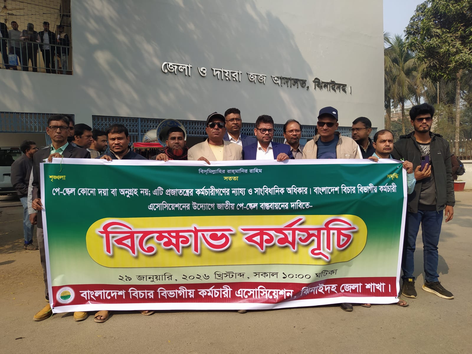৯ম জাতীয় পে-স্কেল বাস্তবায়নের দাবিতে ঝিনাইদহে বাংলাদেশ বিচার বিভাগীয় কর্মচারী এসোসিয়েশনের উদ্যোগে বিক্ষোভ কর্মসূচি অনুষ্ঠিত হয়েছে।