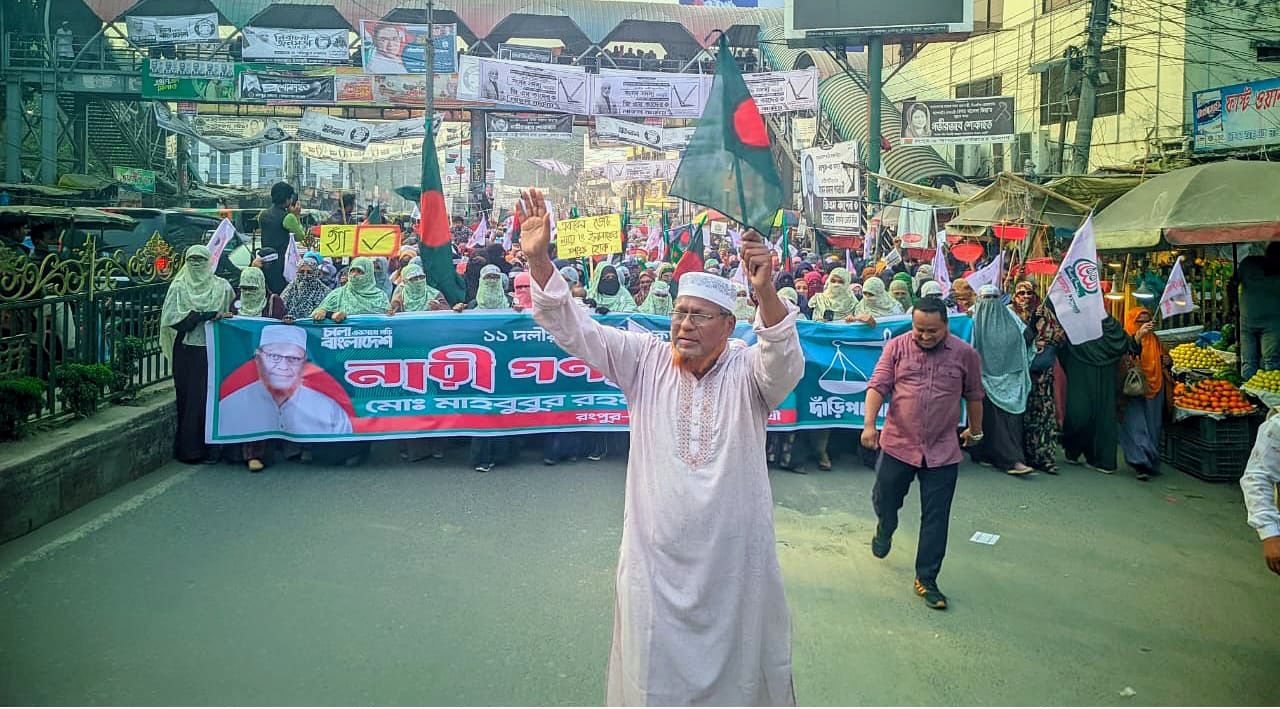 জাতীয় সংসদ নির্বাচনের প্রচারণার শেষ দিনে রংপুর জুড়ে জমজমাট প্রচারণা চালিয়েছে প্রার্থীরা। দিনভর মাইকিং, প্রার্থীদের গণসংযোগ, র্যালী, পথসভায় ভোট উৎসবের আমেজ লক্ষ্য করা গেছে। সোমবার (৯ ফেব্রুয়ারী) সকালে নগরীর সিটি বাজার এলাকায় গণসংযোগ ও লিফলেট বিতরণ করেন রংপুর-৩ (সদর ও সিটি কর্পোরেশন) আসনে বিএনপি প্রার্থী সামসুজ্জামান সামু। জিয়াউর রহমান ফাউন্ডেশনের উদ্যোগে সকালে রংপুর জিলা স্কুল থেকে ধানের শীষের পক্ষে ভোট দেয়ার আহ্বান জানিয়ে পেশাজীবি র্যালী নগরীর গুরুত্বপূর্ণ সড়ক প্রদক্ষিণ করে। এতে অংশ নেন, ঢাকা বিশ^বিদ্যালয়ের শিক্ষক ড. আব্দুল্লাহ আল মামুন, মহানগর বিএনপি’র সদস্য সচিব অ্যাড. মাহফুজ-উন-নবী ডন, রংপুর মেডিকেল কলেজ হাসপাতালের চিকিৎসক ডাঃ মারুফুল ইসলাম, আইনজীবি অ্যাড. রেজেকা সুলতানা ফেন্সিসহ চিকিৎসক, প্রকৌশলী, আইনজীবি, কৃষিবীদ ও শিক্ষকরা। সকালে নগরীর রাধাবল্লভ এলাকায় গণসংযোগ করেছেন রংপুর-৩ আসনের স্বতন্ত্র প্রার্থী, মহানগর বিএনপি’র সদস্য রিটা রহমান। সকালে কাউনিয়া উপজেলার সারাই মাছাড়ি বাজার, জয়বাংলা বাজার, খানসামাহাট এলাকায় পথসভা করেছেন রংপুর-৪ আসনে এগারো দলীয় জোটের প্রার্থী, এনসিপি’র সদস্য সচিব আখতার হোসেন। দুপুরে নগরীর সিটি বাজার থেকে রংপুর-৩ আসনে ইসলামী আন্দোলনের প্রার্থী আমিরুজ্জামান পিয়ালের নেতৃত্বে একটি প্রচারণা মিছিল শুরু হয়। মিছিলটি নগরীর গুরুত্বপূর্ণ সড়ক প্রদক্ষিণ করে। এ সময় প্রার্থী আমিরুজ্জামান পিয়াল লিফলেট বিতরণসহ আগামী ১২ ফেব্রুয়ারী হাতপাখা মার্কায় ভোট চান। দুপুরে সদর উপজেলার পাগলাপীর বাজারে গণসংযোগ করেছেন রংপুর-৩ আসনের প্রার্থী জাতীয় পার্টির চেয়ারম্যান জিএম কাদের। সদরবাসীর উন্নয়নে তিনি লাঙ্গল মার্কায় ভোট চান। বিকেলে রংপুর পাবলিক লাইব্রেরী মাঠ থেকে রংপুর-৩ আসনে জামায়াতের প্রার্থী মাহাবুবুর রহমান বেলালের পক্ষে গণমিছিল বের করা হয়।