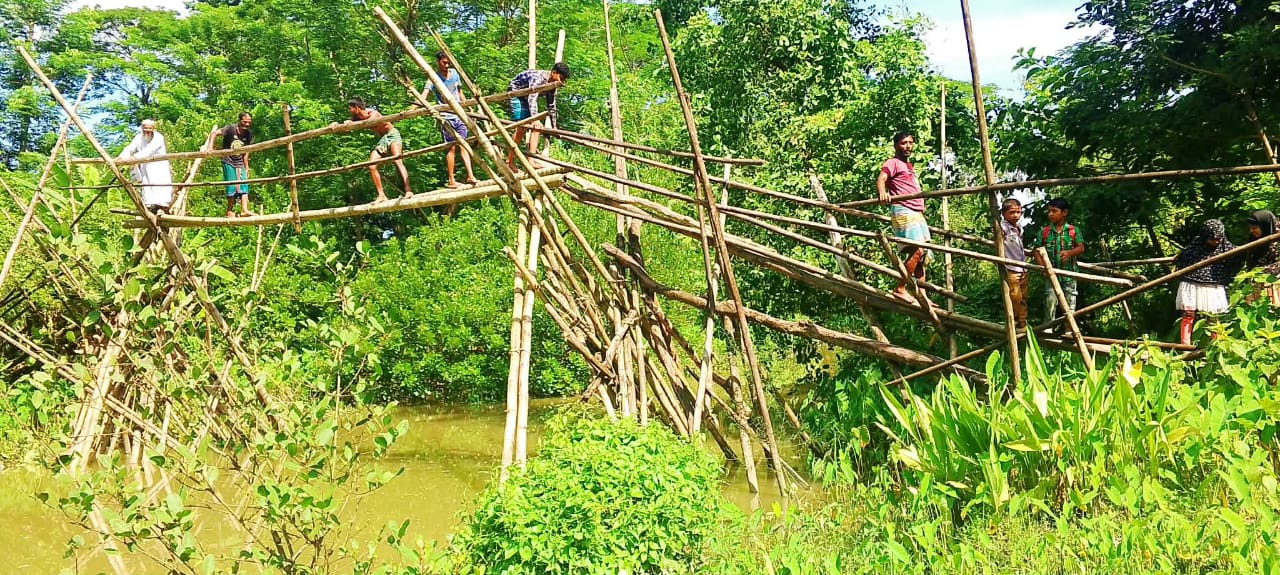পটুয়াখালীর দুমকি উপজেলার মুরাদিয়া নদীর ওপর স্থানীয়দের উদ্যোগে নির্মিত বাঁশের সাঁকোটি এখন চরম ঝুঁকিপূর্ণ হয়ে পড়েছে। কয়েক বছর ধরে সংস্কার না হওয়ায় শ্রীরামপুর ও মুরাদিয়া ইউনিয়নের দু‘পারের বাসিন্দাদের জন্য সাঁকোটি যেন ‘মরণ ফাঁদে’ পরিণত হয়েছে।