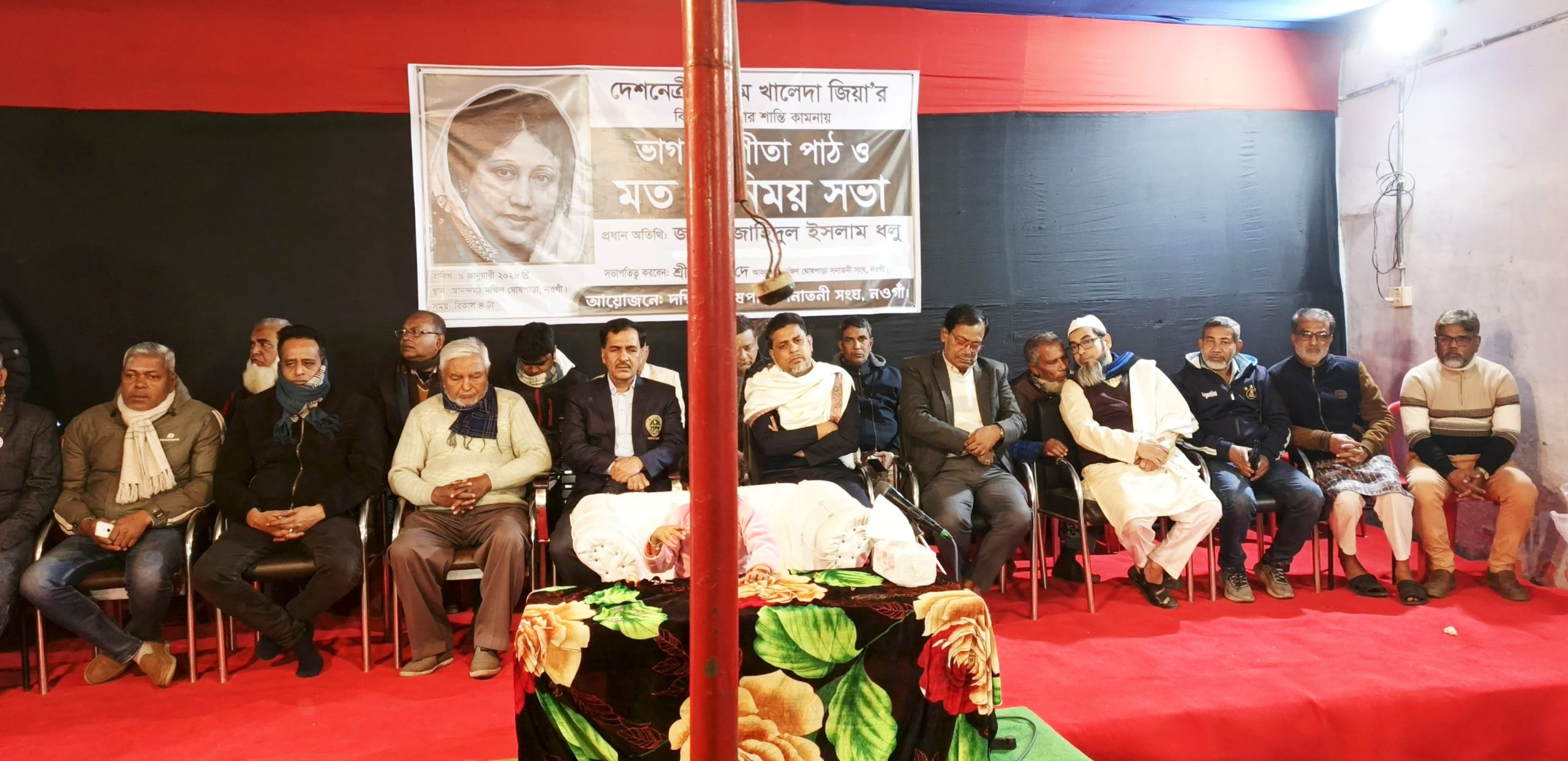 দেশনেত্রী ও সাবেক প্রধানমন্ত্রী বেগম খালেদা জিয়া’র বিদেহী আত্মার শান্তি কামনায় নওগাঁয় ভাগবত গীতা পাঠ ও মতবিনিময় সভা অনুষ্ঠিত হয়েছে।