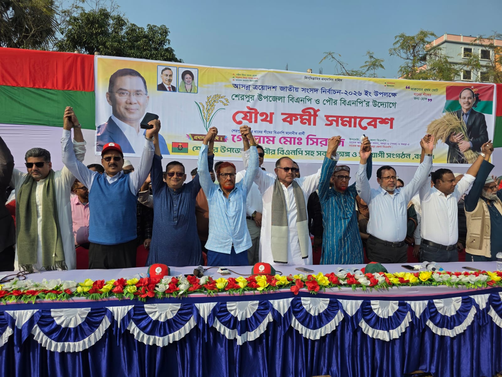 বৃহস্পতিবার (২২ জানুয়ারি) দুপুরে শেরপুর শহরের ভিটিটিআই মাঠে ত্রয়োদশ জাতীয় সংসদ নির্বাচন উপলক্ষ্যে শেরপুর উপজেলা ও পৌর বিএনপি এবং অঙ্গ সংগঠনের উদ্যোগে এক যৌথ কর্মী সমাবেশের আয়োজন করা হয়। সমাবেশে প্রধান অতিথির বক্তব্য রাখেন বগুড়া-৫ ( শেরপুর-ধুনট) আসনের বাংলাদেশ জাতীয়তাবাদী দল বিএনপি মনোনীত এমপি প্রার্থী ও সাবেক এমপি আলহাজ্ব গোলাম মোহাম্মাদ সিরাজ। উপজেলা বিএনপির সভাপতি ভিপি শহিদুল ইসলাম বাবলুর সভাপতিত্বে ও সাধারণ সম্পাদক রফিকুল ইসলাম মিন্টুর সঞ্চালনায় প্রধান বক্তা হিসাবে বক্তব্য রাখেন বগুড়া জেলা বিএনপির সাবেক উপদেষ্টা ও পৌর মেয়র আলহাজ্ব জানে আলম খোকা।