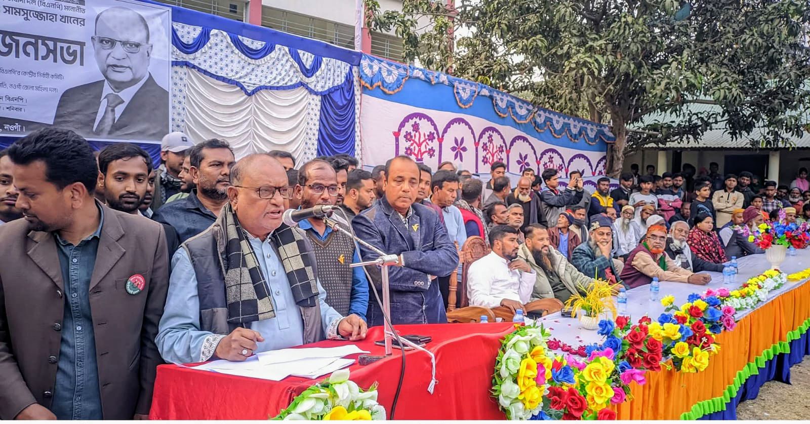 নওগাঁর ধামইরহাট উপজেলায় ইসবপুর ইউনিয়ন বিএনপির আয়োজনে আসন্ন ত্রয়োদশ জাতীয় সংসদ নির্বাচন উপলক্ষ্যে বিশাল জনসভা অনুষ্ঠিত হয়েছে। শনিবার (২৪ জানুয়ারি) বিকালে ইসবপুর উচ্চ বিদ্যালয় মাঠে অনুষ্ঠিত নির্বাচনী জনসভায় প্রধান অতিথি হিসেবে বক্তব্য রাখেন নওগাঁ-২ আসনের বিএনপি মনোনীত এমপি প্রার্থী ও কেন্দ্রীয় কমিটির কৃষি বিষয়ক সম্পাদক মো. সামসুজ্জোহা খান।