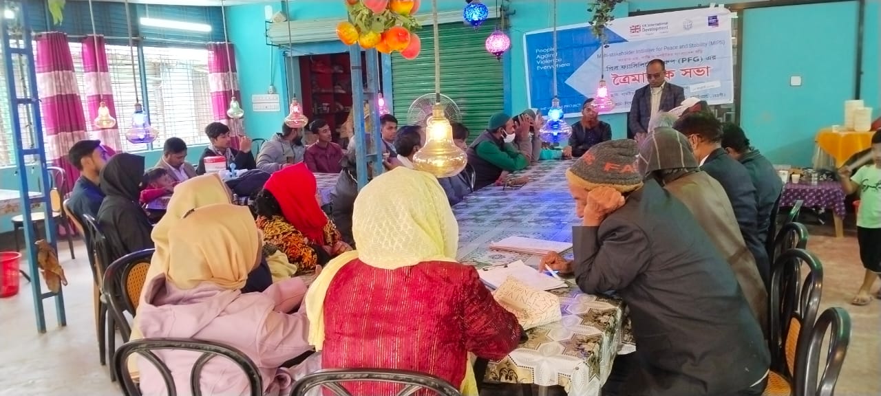 এফসিডিও'র অর্থয়ানে দি হাঙ্গার প্রজেক্ট বাংলাদেশ মাল্টি-স্টেকহোল্ডার ইনিশিয়েটিভ ফর পিস অ্যান্ড স্ট্যাবিলিটি (এমআইপিএস) প্রকল্পের আওতায় পিএফজির কো-অর্ডিনেটর সাংবাদিক আবু হেনা মোঃ কামাল বাবুর সভাপতিত্বে ১৫ জানুয়ারি বৃহস্পতিবার বেলা ১২ আলতাদিঘী জাতীয় উদ্যানে নুরে জান্নাত হোটেল এন্ড রেস্টুরেন্টে সভা অনুষ্ঠিত হয়। এতে প্রধান অতিথি হিসেবে উপস্থিত ছিলেন দি হাঙ্গার প্রজেক্টের এরিয়া সমন্বয়কারী মোঃ আছির উদ্দিন, বিশেষ অতিথি হিসেবে উপস্থিত ছিলেন দি হাঙ্গার প্রজেক্টের নওগাঁ জেলার সমন্বয়কারী হেলাল উদ্দিন। সভায় উপস্থিত ছিলেন ধামরহাট থানা বিএনপির সাধারণ সম্পাদক আলহাজ্ব হানজালা, পৌর বিএনপির সভাপতি মোঃ শহিদুল ইসলাম সরকার, ধামইরহাট মহিলা দলের সাবেক সভাপতি ও ধামইরহাট উপজেলা পরিষদের সাবেক মহিলা ভাইস চেয়ারম্যান মাজেদা বেগম, মহিলা দলের সম্পাদক সেলিনা আক্তার, ধামইরহাট পৌর বিএনপির যুগ্ম সম্পাদক জাহাঙ্গীর আলম, পৌর বিএনপির মহিলা বিষয়ক সম্পাদক সাহিনা আকতার, ধামইরহাট মুক্তিযোদ্ধা কমান্ড কাউন্সিলের সাবেক কমান্ডার বীর মুক্তিযোদ্ধা আব্দুর রউফ মন্ডল, ওয়াইপিএজি'র কো- অর্ডিনেটর সাঈদ বিন জাবেদ।