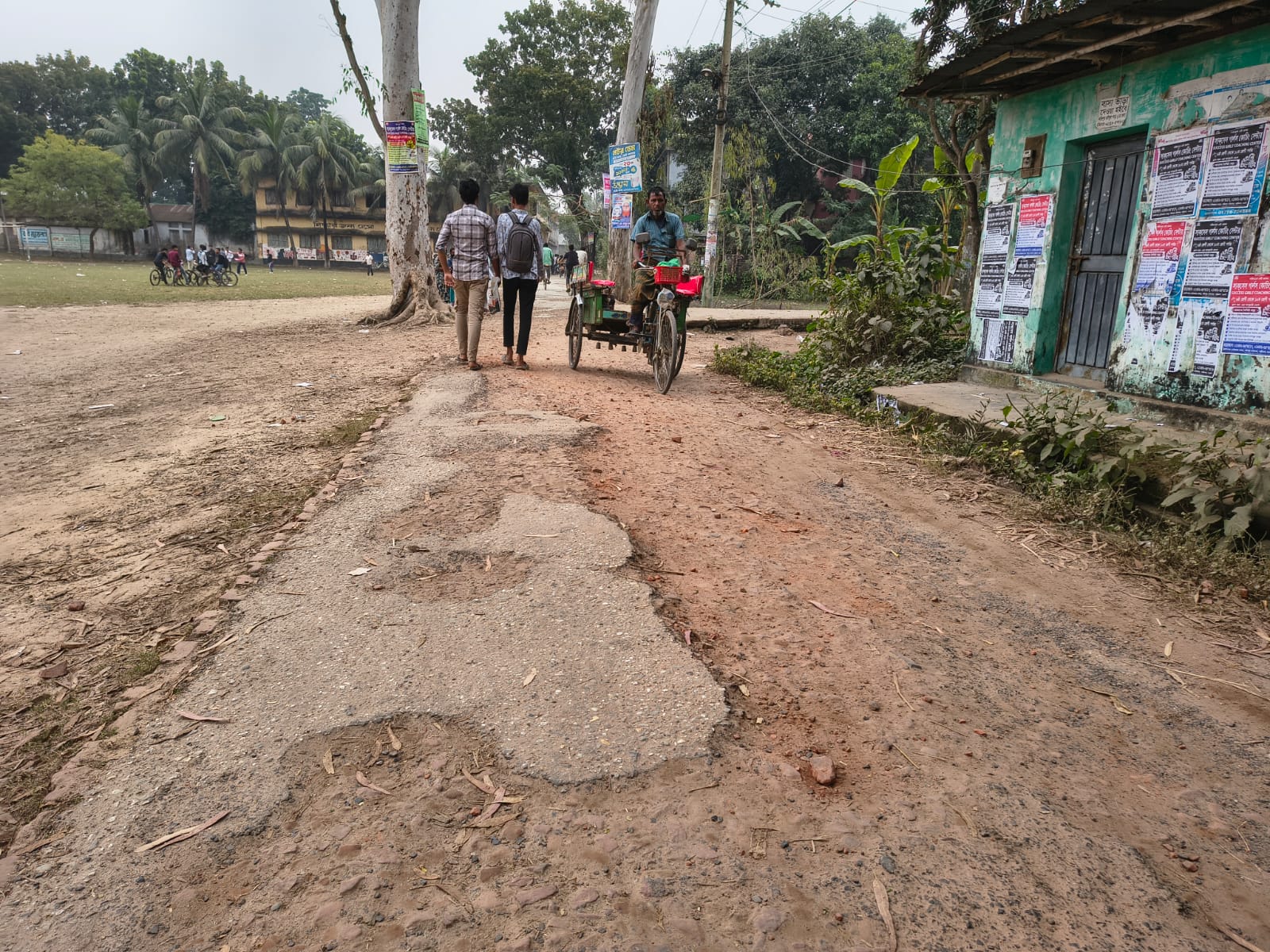 স্কুল থেকে হাসপাতাল রোডে যুক্ত হওয়া ২শ মিটার এই রাস্তাটি প্রায় ৫ বছর যাবৎ বেহাল দশা দিনে দিনে আরও খারাপ হচ্ছে। রাস্তার অধিকাংশ স্থানে বড় বড় গর্ত,ভাঙা, ইটা বালি, খোয়া, বিটুমিন, উঠেগিয়ে চলাচলে-অযোগ্য হয়ে পড়েছে। ছোট ছোট ক্ষুদে শিক্ষার্থীরা স্কুলে যাওয়া আসা করতে গিয়ে সাইকেল নিয়ে পড়ে গিয়ে আহত হচ্ছে,আবার প্রবীণ ও গর্ভবতী মায়েরা যারা ইউনিয়ন পরিষদে বিভিন্ন সেবা নিতে এই রাস্তায় কষ্টের শিকার হচ্ছে।