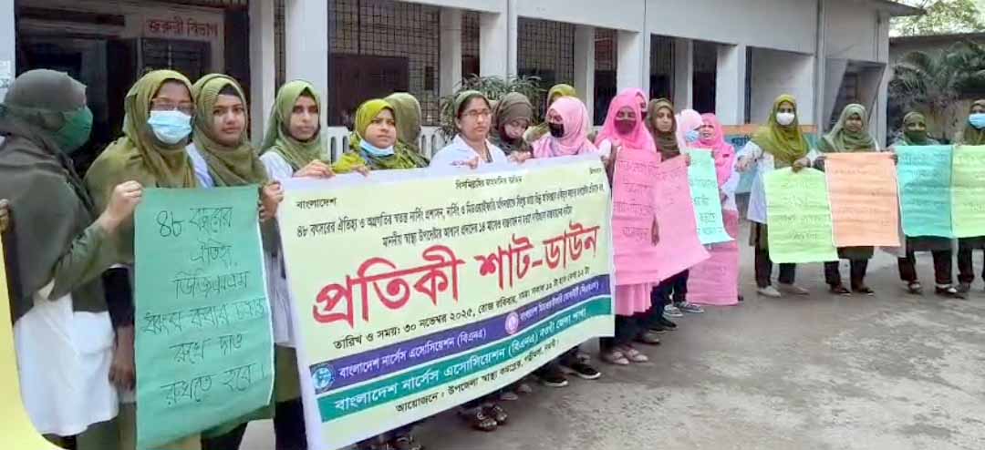 নওগাঁর পত্নীতলায় ৮ দফা দাবিতে নার্সদের প্রতিকী শাট-ডাউন