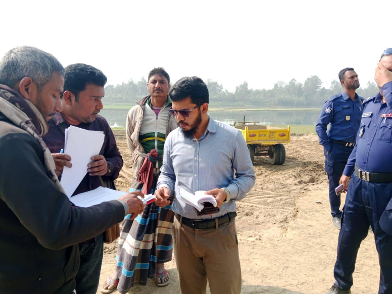 আজ বুধবার (২৮ জানুয়ারি) দুপুর ১২টার দিকে প্রসাদপুর ইউনিয়নের আত্রাই নদীর পাড় এলাকায় এই অভিযান চালানো হয়। অভিযানে দেখা যায়, একটি চক্র দীর্ঘ দিন ধরে অবৈধভাবে নদীর পাড় কেটে মাটি ও বালু সরিয়ে নিচ্ছে। প্রশাসনের উপস্থিতিতে ঘটনার সত্যতা হাতেনাতে প্রমাণিত হয়।