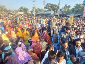সমাবেশকে ঘিরে উপজেলার বিভিন্ন ইউনিয়ন থেকে খন্ড খন্ড মিছিল নিয়ে নেতাকর্মীরা সমাবেশস্থলে যোগ দেন। একসময় ফেরিঘাট বাসস্ট্যাণ্ড এলাকা জনসমুদ্রে পরিণত হয়।