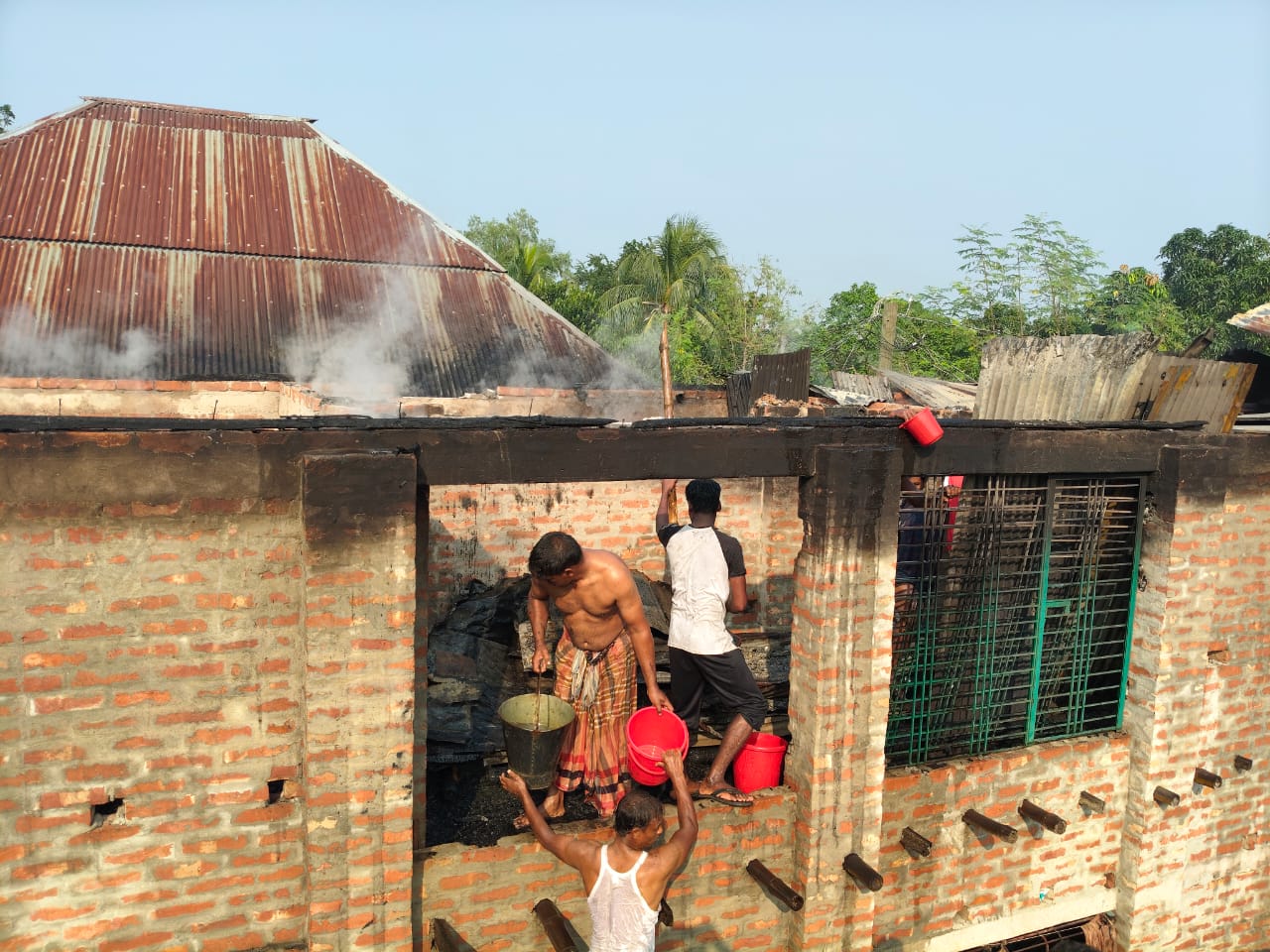 এ সময় গ্রামের লোকজন এসে আগুন নিয়ন্ত্রণের চেষ্টা করেন। এরই মধ্যে পাশর্^বতী আজাদ ও জহিরের বাড়িতে আগুন ছড়িয়ে পড়ে। প্রায় দুই ঘন্টার চেষ্টায় গ্রামবাসির সহযোগিতায় এই আগুন নিয়ন্ত্রণে আসে। এতে চাচা রজব আলীর দু’তলা টিনের চালা, ৬ টি রুম এবং রুমের টিভি, ফ্রিজ, ধান, চালসহ বিভিন্ন আসবাবপত্র পুড়ে ভস্মিভূত হয়ে যায়। এতে প্রায় সাত লাখ টাকার ক্ষতি হয়েছে রজব আলীর।