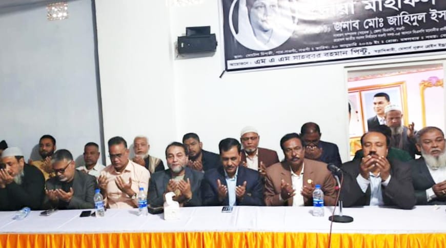 নওগাঁ প্রতিনিধি : সাবেক প্রধানমন্ত্রী ও বিএনপির সাবেক চেয়ারপারসন মরহুমা বেগম খালেদা জিয়া'র রুহের মাগফেরাত কামনায় নওগাঁয় আলোচনা সভা ও দোয়া মাহফিল অনুষ্ঠিত হয়েছে। মঙ্গলবার দুপুরে পার নওগাঁ মোটেল চিশতী সেন্টারে পার-নওগাঁ মের্সাস নরুন গ্রেইন ইন্ড্রাস্টির স্বত্ত্বাধিকারী এম এ এম মাহবুবুর রহমান পিন্টু'র আয়োজনে এ আলোচনা সভা ও দোয়া মাহফিল অনুষ্ঠিত হয়। উক্ত দোয়া মাহফিলে প্রধান অতিথি হিসেবে উপস্থিত ছিলেন নওগাঁ জেলা বিএনপির সাবেক সাধারণ সম্পাদক ও ত্রয়োদশ জাতীয় সংসদ নির্বাচনে নওগাঁ -৫ সদর আসনের বিএনপি মনোনীত প্রার্থী জাহিদুল ইসলাম ধলু। বিশিষ্ট ব্যবসায়ী মোতালেব তালুকদারের সভাপতিত্বে বিশেষ অতিথি হিসেবে নওগাঁ জেলা বিএনপির সাংগঠনিক সম্পাদক শফিউল আযম রানা, সাবেক সদস্য সচিব বায়েজিদ হোসেন পলাশ, বিশিষ্ট ব্যবসায়ী আলহাজ্ব তৌফিকুল আসলাম বাবু, নওগাঁ জেলা চাল কল মালিক গ্রুপের সাধারণ সম্পাদক ফরহাদ হোসেন চকদার, সহ নওগাঁ জেলা বিএনপির অঙ্গ সহযোগী সংগঠনের বিভিন্ন পর্যায়ের নেতৃবৃন্দ ও ব্যবসায়ীরা উপস্থিত ছিলেন। আলোচনা সভা শেষে বিএনপির সাবেক চেয়ারপারসন সাবেক প্রধানমন্ত্রী মরহুমা বেগম খালেদা জিয়া'র রুহের মাগফেরাত কামনায় বিশেষ দোয়া করা হয়।