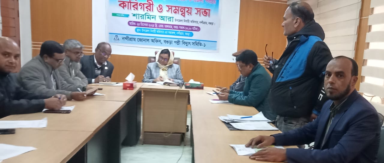বগুড়ার নন্দীগ্রামে জাতীয় রুফটপ সোলার কর্মসূচী বাস্তবায়নে উপজেলা পর্যায়ে কারিগরি সমন্বয় কমিটির সভা অনুষ্ঠিত হয়েছে।