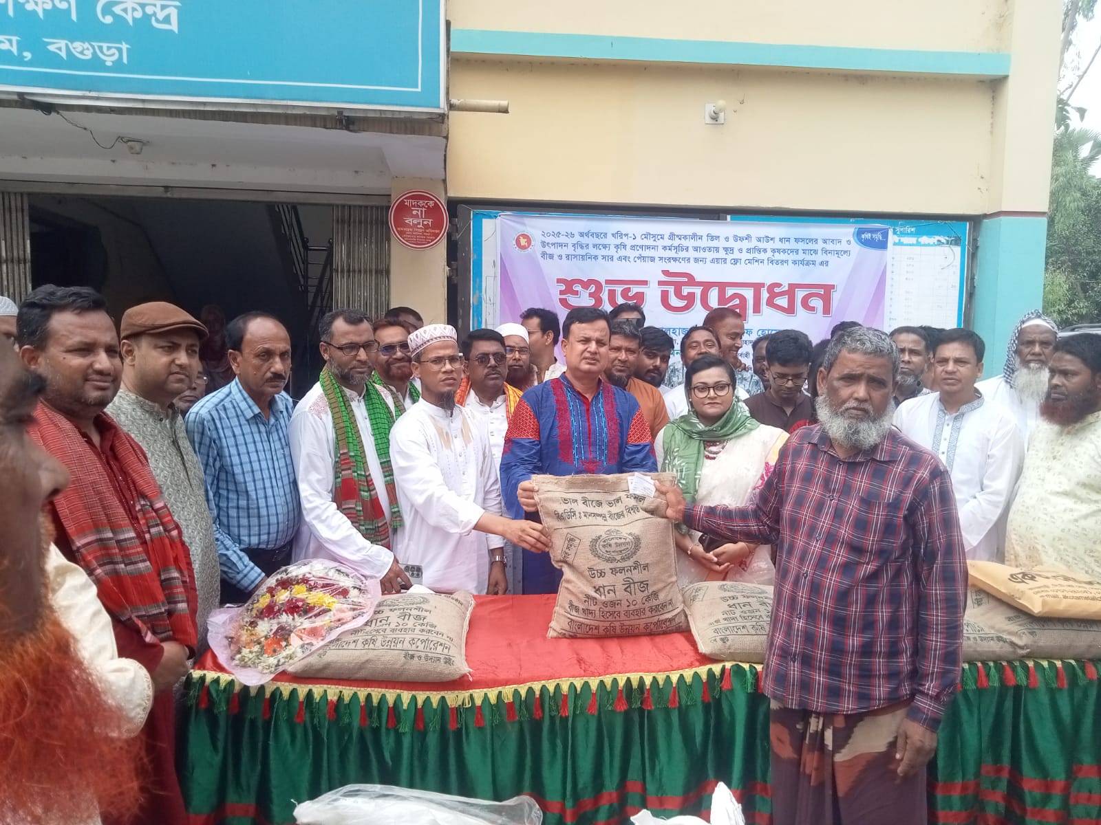 নন্দীগ্রাম (বগুড়া) প্রতিনিধিঃ কৃষিই সমৃদ্ধি" এই প্রতিপাদ্যে বগুড়ার নন্দীগ্রামে ১৪ এপ্রিল (মঙ্গলবার) ১লা বৈশাখে দুপুর সাড়ে ১২টায় উপজেলা কৃষি অধিদপ্তরের আয়োজনে ২০২৫-২৬ অর্থবছরে খরিপ-১ মৌসুমে গ্রীষ্মকালীন তিল ও উফশী আউশ ধান ফসলের আবাদ ও উৎপাদন বৃদ্ধির লক্ষ্যে কৃষি প্রনোদনা কর্মসূচীর আওতায় ক্ষুদ্র ও প্রান্তিক কৃষকদের মাঝে বিনামূল্যে বীজ ও রাসায়নিক সার এবং পিঁয়াজ সংরক্ষনের জন্য এয়ার ফ্লো মেশিন বিতরণ কার্যক্রমের উদ্বোধন করেন ৩৯, বগুড়া-৪ (কাহালু-নন্দীগ্রাম) আসনের মাননীয় জাতীয় সংসদ সদস্য আলহাজ্ব মোঃ মোশারফ হোসেন।