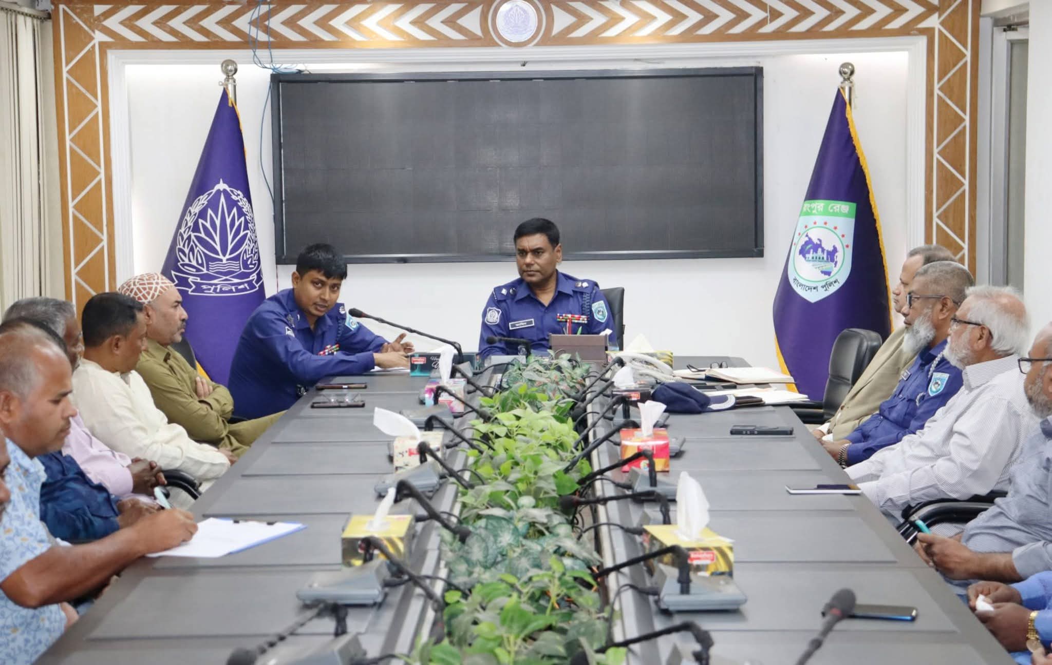 আসন্ন পবিত্র ঈদুল ফিতর/২০২৬ উপলক্ষে ঈদযাত্রা সুন্দর, স্বস্তিদায়ক ও নিরাপদ করার লক্ষ্যে নীলফামারীতে মোটর ও বাস মালিক-শ্রমিক নেতৃবৃন্দের সঙ্গে মতবিনিময় সভা অনুষ্ঠিত হয়েছে। বুধবার (০৪ মার্চ ২০২৬ খ্রি.) পুলিশ সুপারের কার্যালয় নীলফামারীর কনফারেন্স রুমে এ সভা অনুষ্ঠিত হয়। সভায় সভাপতিত্ব করেন নীলফামারী জেলার পুলিশ সুপার শেখ জাহিদুল ইসলাম, পিপিএম মহোদয়। তিনি বলেন, ঈদকে কেন্দ্র করে ঘরমুখো মানুষের যাতায়াত নির্বিঘ্ন রাখতে আইনশৃঙ্খলা বাহিনী সর্বোচ্চ সতর্ক থাকবে। অতিরিক্ত ভাড়া আদায়, অতিরিক্ত যাত্রী বহন, ফিটনেসবিহীন যানবাহন চলাচল এবং বেপরোয়া গাড়ি চালনার বিরুদ্ধে কঠোর ব্যবস্থা গ্রহণ করা হবে। যাত্রীদের নিরাপত্তা নিশ্চিতে মালিক-শ্রমিকদের আন্তরিক সহযোগিতা কামনা করেন তিনি। সভায় উপস্থিত ছিলেন জনাব মোঃ আব্দুল গফুর সরকার, সভাপতি, মোটর ও বাস মালিক সমিতি, নীলফামারী জনাব মোঃ মোর্শেদ আলম, সদস্য সচিব, নীলফামারী ট্রাক মালিক সমিতি
