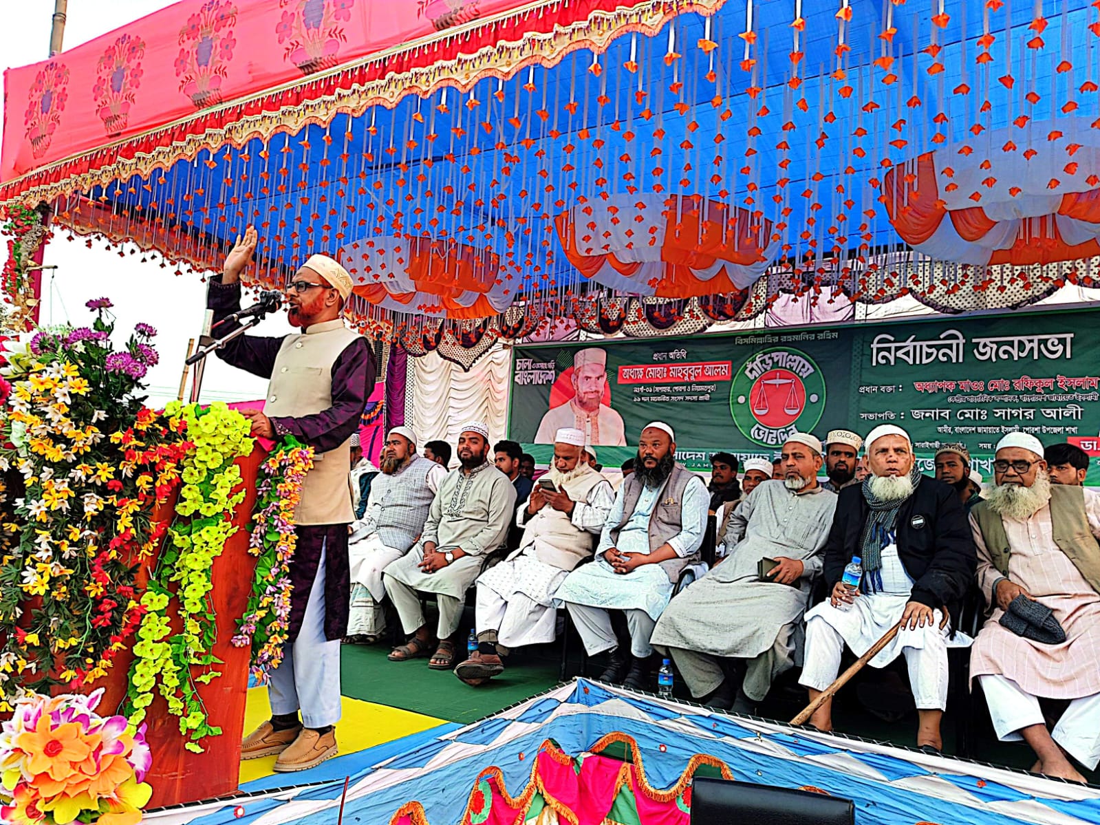 নওগাঁ-১ (সাপাহার-পোরশা-নিয়ামতপুর) আসনে ১১ দলীয় ঐক্য জোট সমর্থিত ও বাংলাদেশ জামায়াতে ইসলামী মনোনীত সংসদ সদস্য প্রার্থী অধ্যক্ষ মাহাবুবুল আলমের পক্ষে এক নির্বাচনী জনসভা অনুষ্ঠিত হয়েছে। রবিবার বিকেলে নওগাঁর পোরশা উপজেলা জামায়াতে ইসলামীর উদ্যোগে কালিনগর সরকারি প্রাথমিক বিদ্যালয় মাঠে অনুষ্ঠিত জনসভায় সভাপতিত্ব করেন উপজেলা জামায়াতের আমির সাগর আলী। উপজেলা জামায়াতের সেক্রেটারী শরিফুল ইসলামের পরিচালনায় নির্বাচনী জনসভায় প্রধান অতিথি ছিলেন জামায়াতে ইসলামী মনোনিত সংসদ সদস্য প্রার্থী অধ্যক্ষ মাহবুবুল আলম। প্রধান বক্তা হিসেবে উপস্থিত ছিলেন জামায়াতে ইসলামীর কেন্দ্রিয় সাংগঠনিক সম্পাদক অধ্যাপক রফিকুল ইসলাম। এসময় নওগাঁ জেলা জামায়াতের নায়েবে আমির মহিউদ্দিন, জেলা জামায়াতের কর্মপরিষদ সদস্য ও নওগাঁ-১ আসনের নির্বাচন পরিচালক নওশাদ আলী, জেলা খেলাফত মজলিশের সভাপতি ফজলুল হক শাহ্ চৌধুরী, এনসিপির কেন্দ্রীয় যুবশক্তির সদস্য সচিব নিশাদ আহমেদ, নিয়ামপুত উপজেলা জামায়াতের আমির আফজাল হোসেন ও সাপাহার উপজেলা জামায়াতের আমির আবুল খায়ের সহ জেলা ও উপজেলা পর্যায়ের নেতৃবৃন্দ এবং স্থানীয় জামায়াত নেতৃবৃন্দ উপস্থিত ছিলেন।