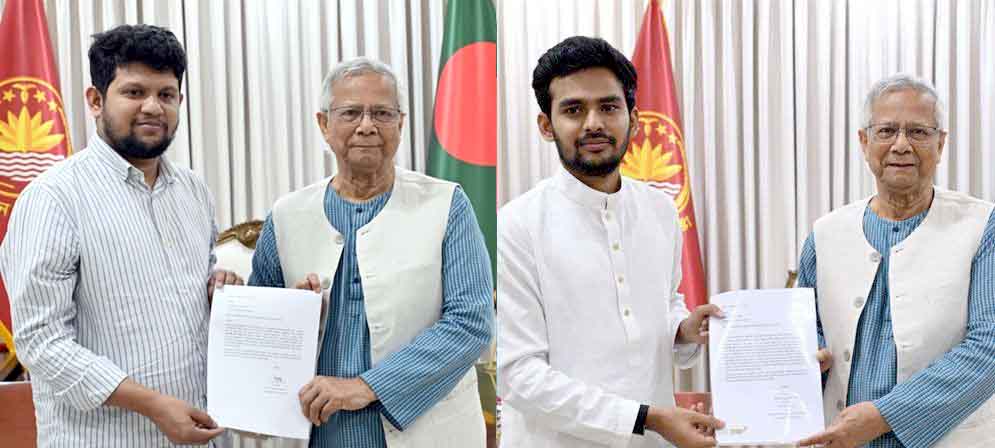 বাংলার গৌরব ডেক্সঃ অন্তর্বর্তী সরকারের উপদেষ্টার পদ থেকে আজ পদত্যাগ করলেন মাহফুজ আলম ও আসিফ মাহমুদ সজীব ভুঁইয়া। তাঁরা পদত্যাগপত্র জমা দিয়েছেন বলে বুধবার সন্ধ্যায় প্রধান উপদেষ্টার কার্যালয়ের একটি সূত্র প্রথম আলোকে নিশ্চিত করেছে।