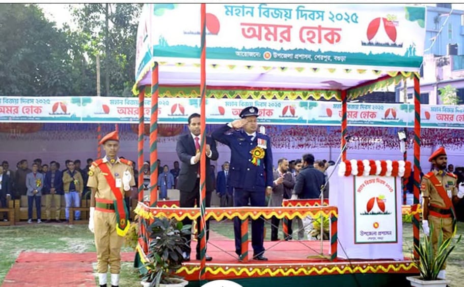 বগুড়ার শেরপুরে ৩১ বার তোপধ্বনি, কুচকাওয়াজ এবং বীর মুক্তিযোদ্ধাদের সংবর্ধনার মধ্য দিয়ে যথাযোগ্য মর্যাদায় মহান বিজয় দিবস পালিত হয়েছে। দিবসটি উপলক্ষে মঙ্গলবার (১৬ ডিসেম্বর) দিনব্যাপী উপজেলা প্রশাসন, রাজনৈতিক দল ও বিভিন্ন প্রতিষ্ঠানের পক্ষ থেকে নানা কর্মসূচির আয়োজন করা হয়।