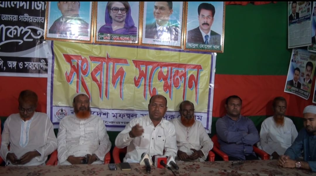 সংবাদ সম্মেলনে লিখিত বক্তব্য পাঠ করেন ইউনিয়ন বিএনপি'র যুগ্ন আহবায়ক বেল্লাল হোসেন হাওলাদার।