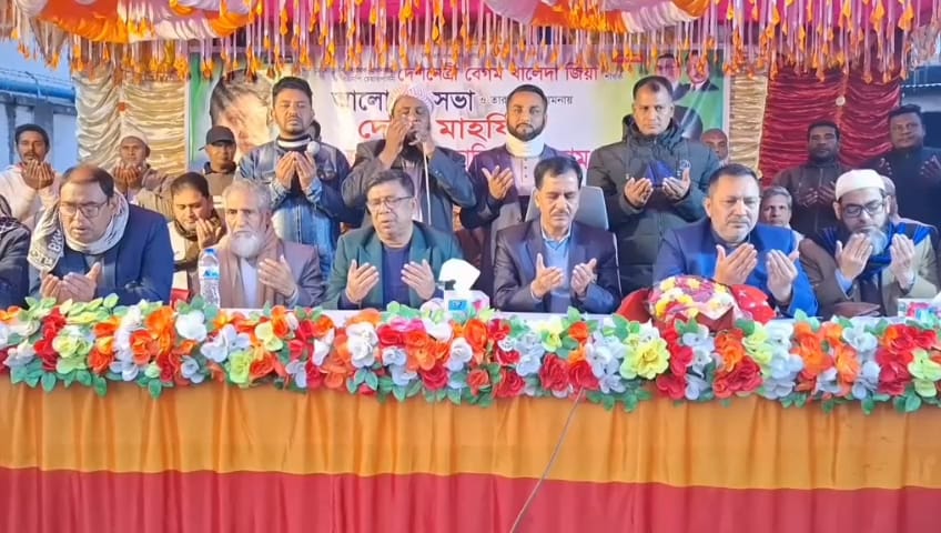 সাবেক প্রধানমন্ত্রী ও বিএনপির চেয়ারপারসন বেগম খালেদা জিয়ার আশু রোগ মুক্তি কামনায় নওগাঁয় আলোচনা সভা ও দোয়া মাহফিল অনুষ্ঠিত হয়েছে। মঙ্গলবার বিকেল ৫টায় নওগাঁ পৌরসভার ৭ নং ওয়ার্ডের মেরিগোল্ড স্কুল মাঠে মেরিগোল্ড এলাকাবাসীর আয়োজনে এই অনুষ্ঠান অনুষ্ঠিত হয়। সমাজসেবক ও এলাকার সন্তান চিশতি রিগানের সভাপতিত্বে প্রধান অতিথি হিসেবে বক্তব্য রাখেন নওগাঁ জেলা বিএনপির সাবেক সাধারণ সম্পাদক ও ত্রয়োদশ জাতীয় সংসদ নির্বাচনে নওগাঁ সদর-৫ আসনের বিএনপি মনোনীত প্রার্থী জাহিদুল ইসলাম ধলু। এসময় অন্যান্যর নওগাঁ জেলা বিএনপির সাবেক আহবায়ক কমিটির সাবেক যুগ্ম আহ্বায়ক শহিদুল ইসলাম টুকু, মাসুদ হাসান তুহিন, নওগাঁ সদর উপজেলার ৩ নং বক্তারপুর ইউনিয়ন পরিষদের চেয়ারম্যান ও বিএনপি নেতা সারোয়ার হোসেন চঞ্চল, ওই ওয়ার্ডের সাবেক কমিশনার আবুল কালাম আজাদ প্রমূখ সহ জেলা বিএনপির অঙ্গ সহযোগী সংগঠনের বিভিন্ন পযার্য়ের নেতৃত্ববৃন্দ উপস্থিত ছিলেন। আলোচনা সভা শেষে সাবেক প্রধানমন্ত্রী ও বিএনপির চেয়ারপারসন বেগম খালেদা জিয়ার আশু রোগ মুক্তি কামনায় দোয়া ও তোবারক বিতরণ করা হয়।