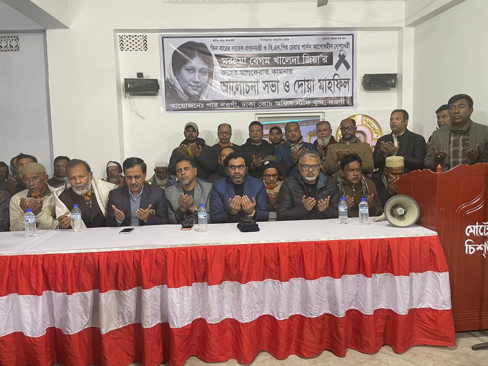 ওগাঁ প্রতিনিধি : সাবেক প্রধানমন্ত্রী ও সাবেক বিএনপির চেয়ারপার্সন মরহুমা বেগম খালেদা জিয়া'র রুহের মাগফেরাত কামনায় দোয়া মাহফিল ও শোকসভা অনুষ্ঠিত হয়েছে।
