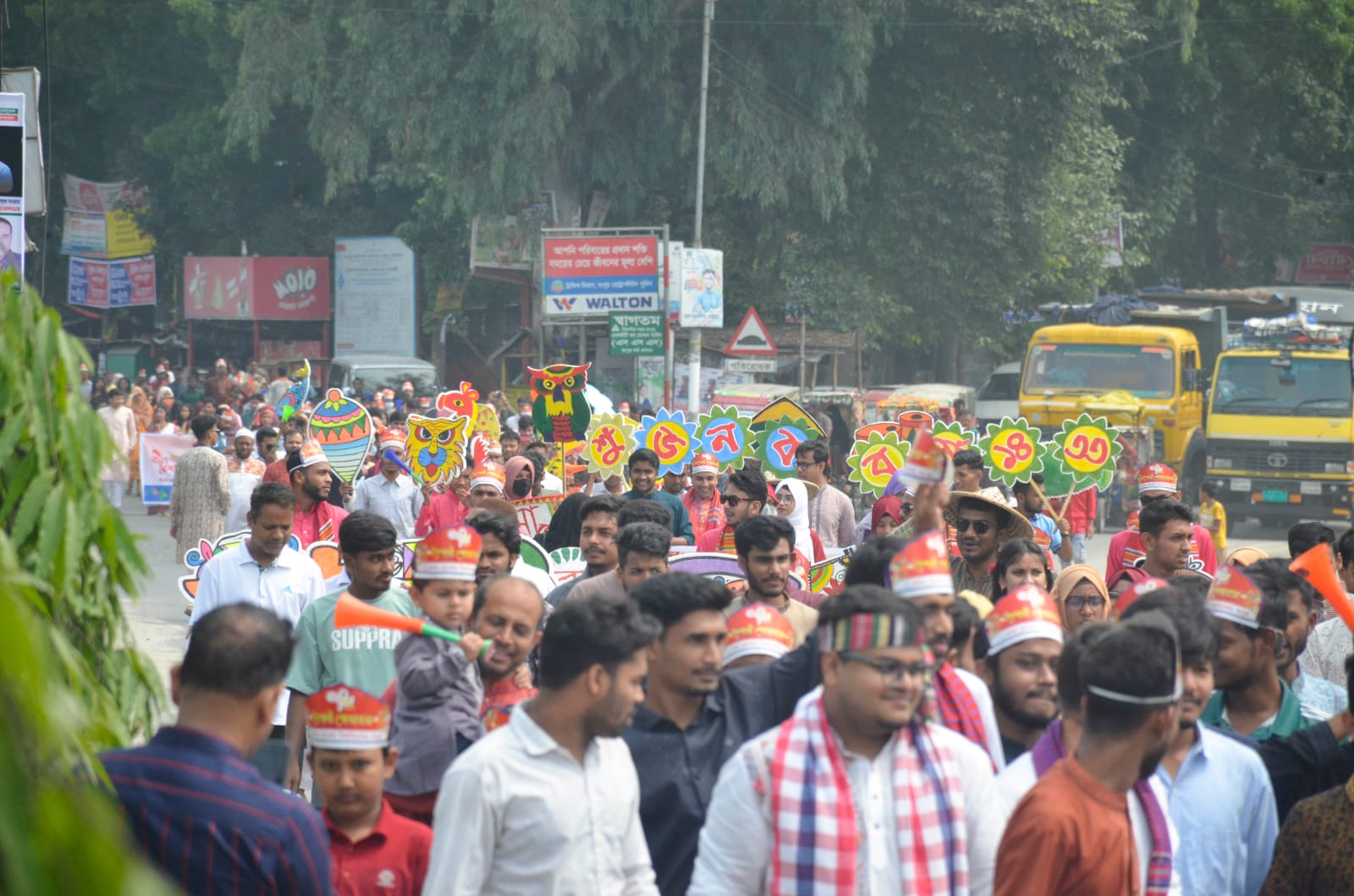 বৈশাখের গান, বাঁশি ও বাদ্যের তালে তালে শোভাযাত্রাটি ক্যাম্পাসের প্রধান প্রধান সড়ক, পার্কের মোড়, শহিদ আবু সাঈদ চত্বর, ক্যাডেট কলেজ মোড় প্রদক্ষিণ করে একাডেমিক ভবনের সামনে এসে শেষ হয়| শিক্ষক, শিক্ষার্থী, কর্মকর্তা ও কর্মচারীদের অংশগ্রহণে শোভাযাত্রায় বাঙালি সমাজের নানা ঐতিহ্য ও সংস্কৃতি প্রদর্শন করা হয়| শোভাযাত্রা শেষে একাডেমিক ভবনসমূহের সামনে বিভিন্ন বিভাগ আয়োজিত বৈশাখী মেলার স্টল পরিদর্শন করেন এবং শিক্ষক-শিক্ষার্থীদের সঙ্গে নববর্ষের শুভেচ্ছা বিনিময় করেন উপাচার্য প্রফেসর ড. মোঃ শওকাত আলী|