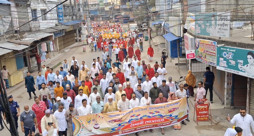 মাগুরায় বর্ণাঢ্য শোভাযাত্রা ও বর্ণনাট্যের মধ্য দিয়ে বাংলা নববর্ষ ১৪৩৩ উদযাপন করা হয়েছে। জেলা প্রশাসনের উদ্যোগে মঙ্গলবার (১৪ এপ্রিল) সকাল ৮টায় জেলা প্রশাসকের কার্যালয় প্রাঙ্গণ থেকে এক বর্ণিল শুভযাত্রা বের হয়, যা শহরজুড়ে উৎসবের আমেজ ছড়িয়ে দেয়।
