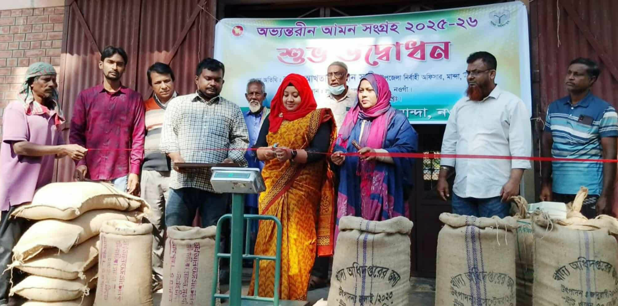 নওগাঁ প্রতিনিধিঃ নওগাঁর মান্দা উপজেলায় আমন মৌসুমের ধান ও চাল সংগ্রহ কার্যক্রমের আনুষ্ঠানিক উদ্বোধন হয়েছে। বৃহস্পতিবার বেলা ১১টার দিকে প্রসাদপুর খাদ্যগুদামে এ কর্মসূচির উদ্বোধন করেন উপজেলা নির্বাহী কর্মকর্তা (ইউএনও) আখতার জাহান সাথী।