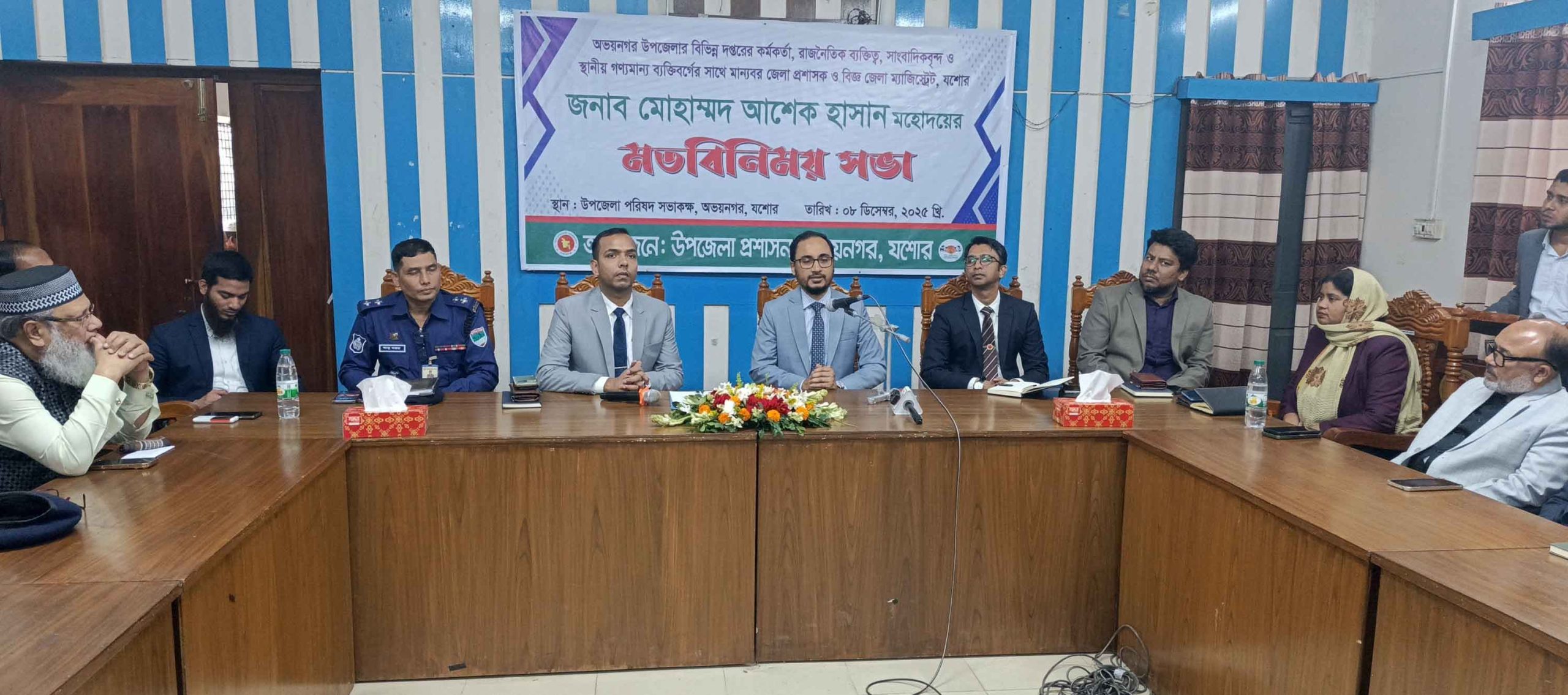 যশোরের অভয়নগরে বিভিন্ন সরকারি দপ্তরের কর্মকর্তা, জনপ্রতিনিধি, রাজনৈতিক নেতৃবৃন্দ, সাংবাদিক এবং স্থানীয় গণ্যমান্য ব্যক্তিদের সঙ্গে মতবিনিময় করেছেন নবাগত জেলা প্রশাসক মোহাম্মদ আশেক হাসান। উপজেলা প্রশাসনের আয়োজনে সোমবার (৮ ডিসেম্বর) দুপুরে উপজেলা পরিষদের সভাকক্ষে এ মতবিনিময় সভা অনুষ্ঠিত হয়।