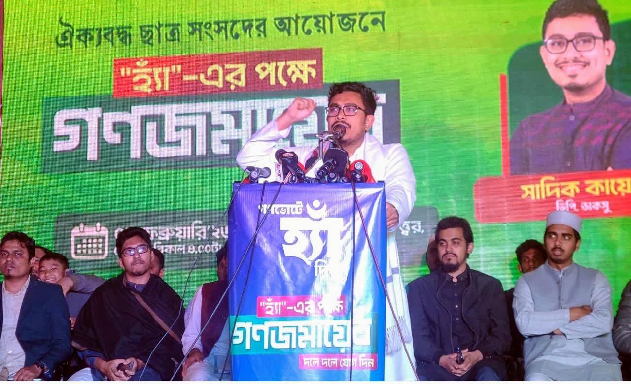 সোমবার (২ ফেব্রুয়ারী) রাতে রংপুর নগরীর শহীদ আবু সাঈদ চত্ত্বরে ঐক্যবদ্ধ ছাত্র সংসদের উদ্যোগে গণভোটে হ্যাঁ-এর পক্ষে গণজমায়েত অনুষ্ঠানে প্রধান অতিথির বক্তব্যে তিনি এসব কথা বলেন।