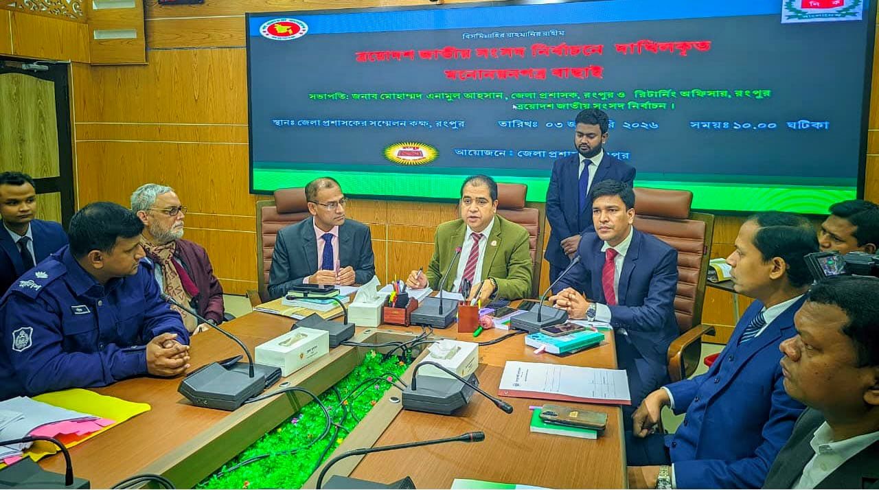 শনিবার (৩ জানুয়ারী) বিকেলে রংপুর জেলা প্রশাসক সম্মেলন কক্ষে যাচাই-বাছাইয়ের শেষ দিনে রংপুর-৫ ও রংপুর-৬ আসনের প্রার্থীদের মনোনয়পত্র যাচাই বাছাই করেন রিটার্নিং কর্মকর্তা, জেলা প্রশাসক মোহাম্মদ এনামুল আহসান। এ সময় তিনি জানান, রংপুর জেলার ৬টি সংসদীয় আসনে ৫৬ জন প্রার্থী মনোনয়নপত্র দাখিল করেন। এতে যাচাই বাছাইয়ে বৈধ প্রার্থী হন ৪৪ জন। এর মধ্যে রংপুর-১ আসনে মনোনয়নপত্র দাখিল করা ৯ প্রার্থীর মধ্যে ৮ জন, রংপুর-২ আসনে মনোনয়নপত্র দাখিল করা ৫ জনের সকলেই, রংপুর-৩ আসনে মনোনয়নপত্র দাখিল করা ১০ প্রার্থীর মধ্যে ৮ জন, রংপুর-৪ আসনে মনোনয়নপত্র দাখিল করা ১০ প্রার্থীর মধ্যে ৭ জন, রংপুর-৫ আসনে মনোনয়নপত্র দাখিল করা ১১ প্রার্থীর মধ্যে ৯ জন এবং রংপুর-৬ আসনে মনোনয়নপত্র দাখিল করা ১১ প্রার্থীর মধ্যে ৭ জনের মনোনয়নপত্র বৈধ হয়েছে।