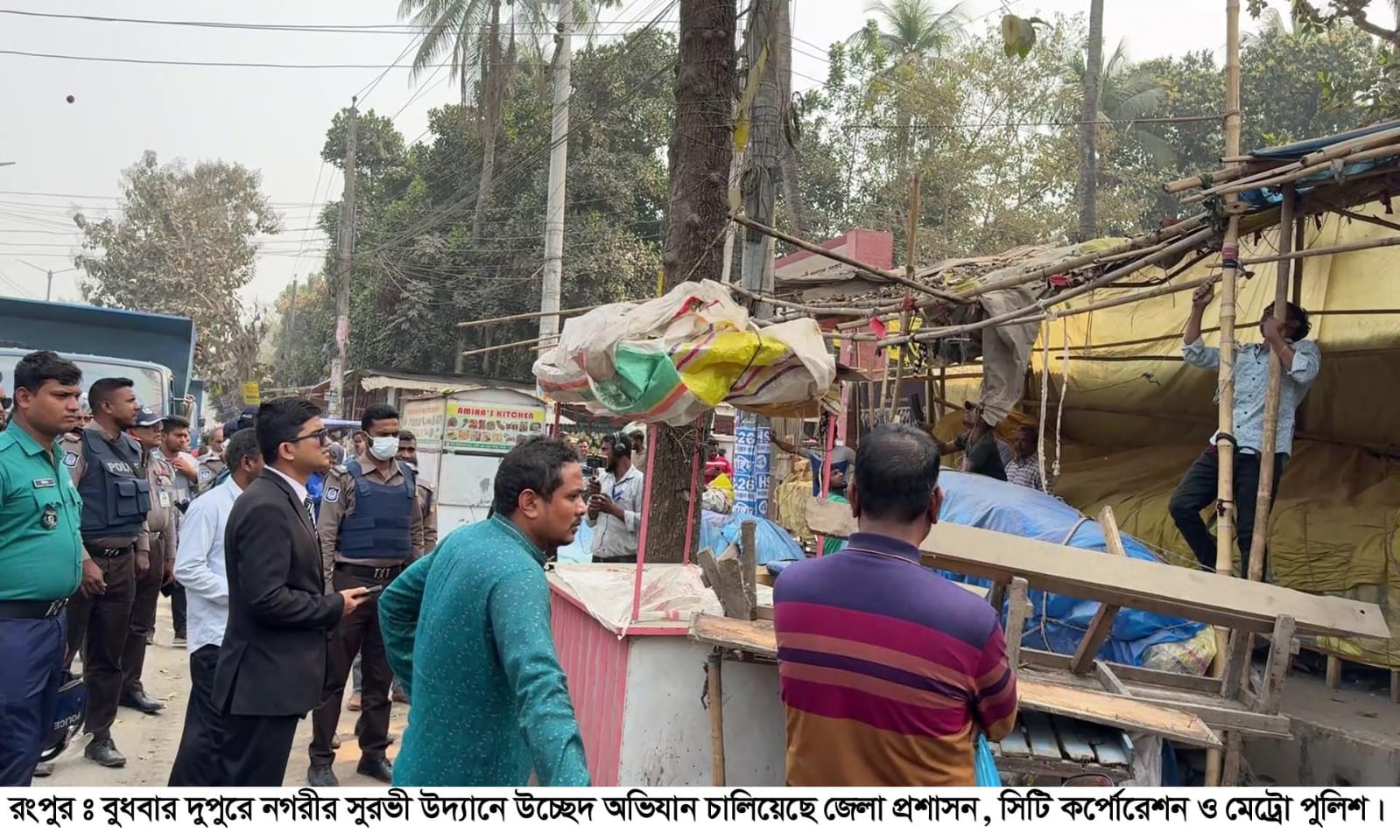 জেলা প্রশাসনের নির্বাহী ম্যাজিস্ট্রেট কাজী মোঃ শাহান বলেন, শহরের ফুটপাতে থাকা অবৈধ স্থাপনা, ব্যানার ফেস্টুন অপসারণ চলমান রয়েছে। আমরা নগরবাসীকে একটি সুন্দর, যানজটমুক্ত নগরী উপহার দেব।
