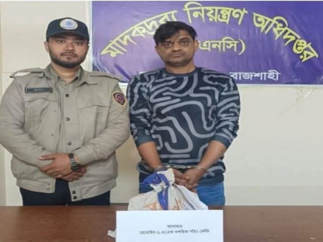 রাজশাহী মহানগরীর দামকুড়া থানা এলাকায় অভিযান চালিয়ে ১ কেজি ৫০০ গ্রাম হেরোইনসহ মোঃ মশিউর রহমান (৪০) নামে এক মাদক কারবারিকে গ্রেপ্তার করেছে মাদকদ্রব্য নিয়ন্ত্রণ অধিদপ্তর (ডি,এন,সি)। মঙ্গলবার (১৭ ফেব্রুয়ারি) ভোর সাড়ে ৫টার দিকে নতুন কসবা গ্রাম এলাকায় এই সফল অভিযান চালানো হয়।