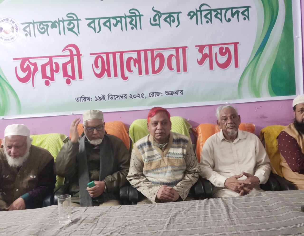 শুক্রবার (১৯ ডিসেম্বর) রাত ৯টায় নগরীর সাহেব বাজার আরডিএ মার্কেটের ৩য় তলায় এ সভার আয়োজন করা হয়। সভায় সভাপতিত্ব করেন সম্মানিত সভাপতি আলহাজ্ব মোঃ হারুনুর রশিদ। প্রধান বক্তা হিসেবে বক্তব্য রাখেন প্রতিষ্ঠাতা সাধারণ সম্পাদক আলহাজ্ব ফরিদ মামুদ হাসান তিনি তার বক্তব্যে বলেন, আমরা রাজশাহী ব্যবসায়ী ঐক্য পরিষদ প্রায় ৮০ টি সংগঠনের সমন্বয়ে সংগঠিত। রাজশাহী ব্যবসায়ী ঐক্য পরিষদ ব্যবসায়ী সংগঠন এবং সামাজিক সংগঠন হিসেবে আমাদের অনেক গৌরবময় ঐতিহ্য এবং ইতিহাস রয়েছে। দীর্ঘ ৪০ বছর যাবৎ আমরা ব্যবসায়ীদের বিপদে আপদে পাশে থেকে তাদের সহযোগিতায় সক্রিয় ভূমিকা রেখেছি আমরা শীতার্থ মানুষের মাঝে শীত বস্ত্র বিতরণ, কম্বল বিতরণ, বন্যা কবলিত মানুষের মাঝে বিশুদ্ধ পানি, প্রয়োজনীয় ওষুধ সহ ত্রান বিতরণ, প্রচন্ড তাপদাহে খাবার স্যালাইন বিস্কুট ছাতি বিতরণ কর্মসূচির মধ্য দিয়ে রাজশাহীর সাধারণ মেহনতি খেঁটে খাওয়া মানুষের পাশে দাঁড়িয়েছি। গ্যাস আন্দোলন,