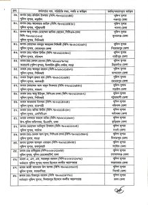 বদলি হওয়া পুলিশ সুপারদের নামের তালিকা বিভাগভিত্তিক দেওয়া হলো: