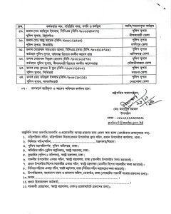 ঢাকা বিভাগঃ দিনাজপুরের এসপি হিসেবে বদলির আদেশপ্রাপ্ত মোঃ মিজানুর রহমানকে ঢাকা জেলার এসপি, ঢাকায় পুলিশ সদর দপ্তরের এসপি মোঃ হাবীবুল্লাহকে গোপালগঞ্জ, মুন্সীগঞ্জের এসপি মুহম্মদ শামসুল আলম সরকারকে টাঙ্গাইল, নরসিংদীর এসপি মোঃ মেনহাজুল আলমকে মুন্সিগঞ্জ, শরীয়তপুরের এসপি মোঃ নজরুল ইসলামকে ফরিদপুর, পঞ্চগড়ের এসপি মোহাম্মদ মিজানুর রহমান মুন্সীকে নারায়ণগঞ্জ, রাঙ্গামাটির এসপি এস এম ফরহাদ হোসেনকে কিশোরগঞ্জ, নোয়াখালীর এসপি মোঃ আব্দুল্লাহ আল ফারুককে নরসিংদী, ব্রাহ্মণবাড়িয়ার এসপি এহতেশামুল হককে মাদারীপুর, ঝিনাইদহের এসপি মোহাম্মদ মনজুর মোরশেদকে রাজবাড়ী, যশোরের এসপি রওনক জাহানকে শরীয়তপুর, বরিশালের এসপি মোঃ শরিফ উদ্দীনকে গাজীপুর ও গাইবান্ধার এসপি হিসেবে বদলির আদেশপ্রাপ্ত মোহাম্মদ সারওয়ার আলমকে মানিকগঞ্জ জেলার এসপি হিসেবে বদলি করা হয়েছে।