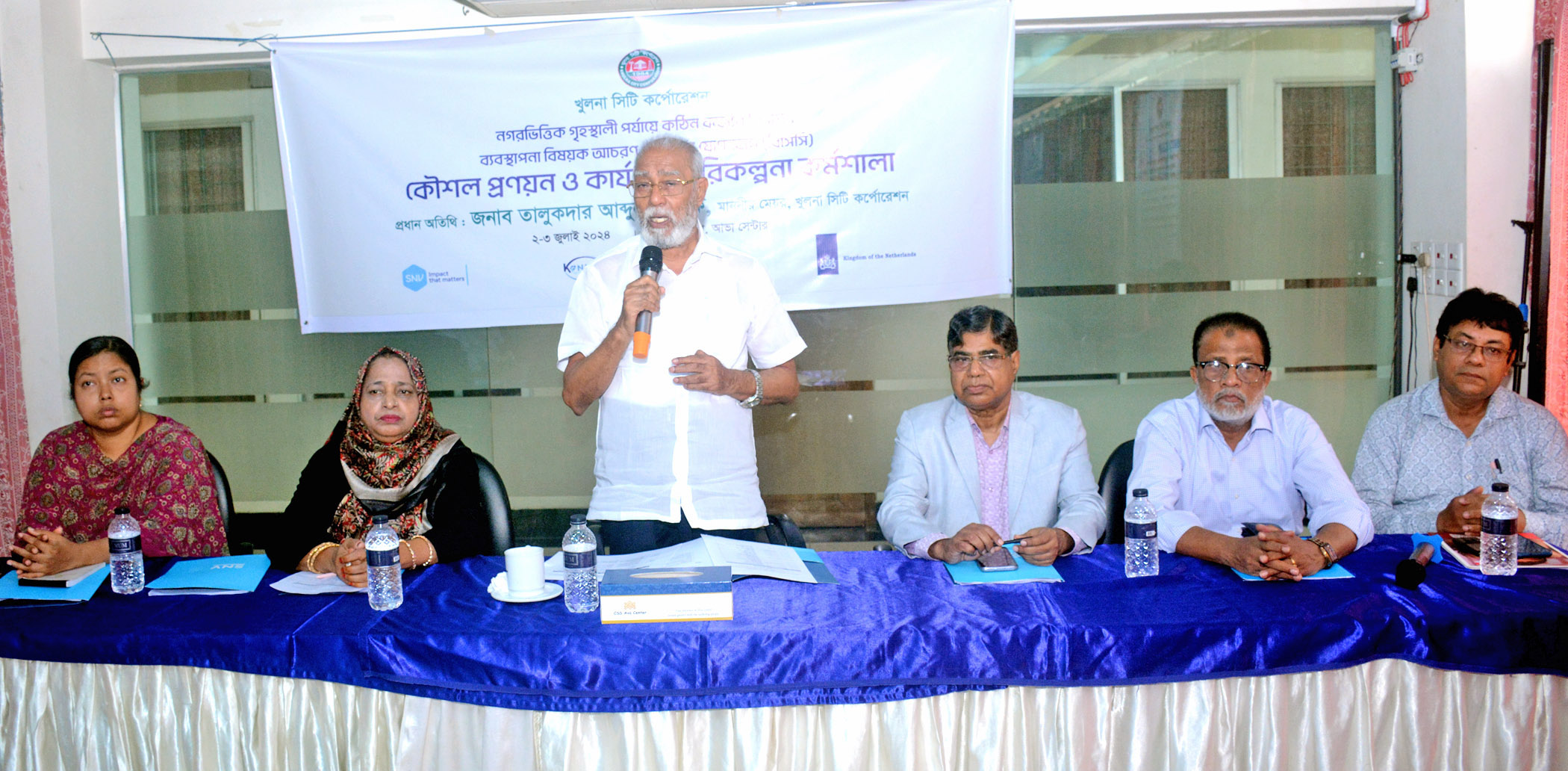 নগরভিত্তিক গৃহস্থালী পর্যায়ে কঠিন বর্জ্যরে নিরাপদ ব্যবস্থাপনা বিষয়ক আচরণ পরিবর্তন যোগাযোগ (বিসিসি) কৌশল প্রণয়ন ও কার্যক্রম পরিকল্পনা বিষয়ে দুই দিনব্যাপী কর্মশালার উদ্বোধন অনুষ্ঠান আজ (মঙ্গলবার) খুলনা সিএসএস আভা সেন্টারে অনুষ্ঠিত হয়। এতে প্রধান অতিথি ছিলেন খুলনা সিটি কর্পোরেশনের মেয়র তালুকদার আব্দুল খালেক।