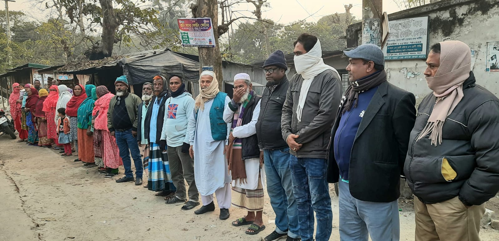 বগুড়ার আদমদীঘি উপজেলার সান্তাহার পৌরসভার স্টেশন কলোনিসহ বিভিন্ন এলাকায় পানি সংকট নিরসন, বিশুদ্ধ পানি সরবরাহ দাবিতে মানববন্ধন অনুষ্ঠিত হয়েছে। গতকাল রোববার বিকেল ৫ টায় পৌর শহরের স্টেশনের কলোনির সামনে এলাকাবাসীর উদ্যোগে এ মানববন্ধন কর্মসূচি অনুষ্ঠিত হয়। সান্তাহার পৌরসভার ৬ নম্বর ওয়ার্ডের সাবেক কাউন্সিলর নাজিম উদ্দীন খান বাচ্চুর সভাপতিত্বে ও ৫ নম্বর ওয়ার্ডের সাবেক কাউন্সিলর ইঞ্জিনিয়ার সাইফুল ইসলাম খোকনের সঞ্চালনায় অনুষ্ঠিত মানববন্ধনে বক্তব্য রাখেন ৭ নম্বর ওয়ার্ডের কাউন্সিলর পদপ্রার্থী জাহিদুল ইসলাম, সান্তাহার রেলওয়ে শ্রমিক দলের সাধারণ সম্পাদক রাজু আহমেদ, পল্লী চিকিৎসক ডালিম হোসেন, আমেনা বিবি, আছমা বেগম, রোমানা আক্তার প্রমুখ। বক্তারা বলেন, দীর্ঘদিন ধরে সান্তাহার পৌর কর্তৃপক্ষের অবহেলা ও উদাসিনতা কারনে বিভিন্ন ওয়ার্ডে তীব্র পানি সংকট বিরাজ করছে। অজ্ঞাত কারণে পাম্পটি মেরামত কিংবা নতুন পাম্প স্থাপন করা হচ্ছে না। এ কারণে এলাকায় পানি সংকট দেখা দিয়েছে। অবিলম্বে পানি সংকট নিরসনে উদ্যোগ নেওয়ার দাবি জানান।
