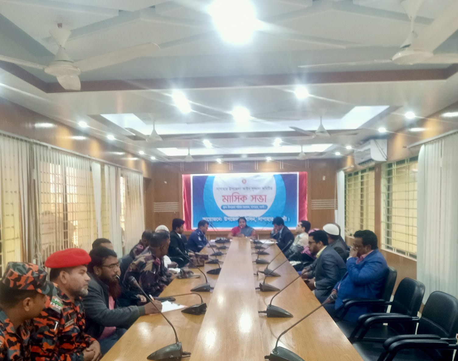 আলমগীর হোসেন, সাপাহার (নওগাঁ) প্রতিনিধি: নওগাঁর সাপাহারে উপজেলা আইন শৃঙ্খলা কমিটির মাসিক সভা অনুষ্ঠিত হয়েছে। উপজেলা প্রশাসনের উদ্যোগে উপজেলা পরিষদ সভাকক্ষে বৃহস্পতিবার (১১ ডিসেম্বর ২০২৫ ) সকাল ১১টায় আইন শৃঙ্খলা কমিটির মাসিক সভায় সভাপতিত্ব করেন উপজেলা নির্বাহী অফিসার রোমানা রিয়াজ, এসময় উপস্থিত ছিলেন, উপজেলা প্রাণিসম্পদ কর্মকর্তা ডা: গোলাম রাব্বানী, উপজেলা কৃষি কর্মকর্তা মনিরুজ্জামান (টকি), উপজেলা সমাজ সেবা অফিসার দেলোয়ার হোসেন, উপজেলার স্কুল কলেজের প্রধানগণ সহ উপজেলার সকল দপ্তরের কর্মকর্তা, থানার অফিসার ইনচার্জ (ওসি) মোহা: আনারুল ইসলাম, ফায়ার সার্ভিস ও সিভিল ডিফেন্স স্টেশন কর্মকর্তা ইসমাইল হোসেন, আদাতলা ও খঞ্জনপুর বিজিবি, সকল ইউনিয়ন পরিষদের চেয়ারম্যান ও আইনশৃঙ্খলা কমিটির সদস্যবৃন্দ। সভায় উপজেলার আইন-শৃঙ্খলা পরিস্থিতি স্বাভাবিক রাখাসহ সন্ত্রাস, মাদক, চোরাচালান, বাল্য বিবাহ, ইভ টিজিং প্রতিরোধসহ বিভিন্ন বিষয়ে দিক নির্দেশনামুলক বক্তব্য দেন উপজেলা নির্বাহী অফিসার রোমানা রিয়াজ।