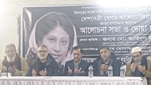 নওগাঁ প্রতিনিধিঃ বাংলাদেশর সাবেক প্রধানমন্ত্রী ও বিএনপির চেয়ারপারসন মরহুমা বেগম খালেদা জিয়া’র রুহের মাগফেরাত কামনায় নওগাঁয় আলোচনা সভা ও দোয়া মাহফিল অনুষ্ঠিত হয়েছে। রোববার সন্ধ্যায় শহরের জিলা স্কুল হল রুমে read more