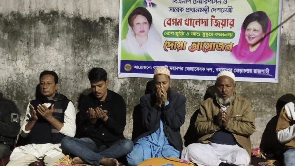 রাজশাহীতে বেগম খালেদা জিয়ার রোগমুক্তি কামনায় দোয়া মাহফিল অনুষ্ঠিত। তন্ময় দেবনাথ, রাজশাহীঃ রাজশাহী মহানগরীর রাজপাড়া থানা ঘোড়াচত্তরে বৃহস্পতিবার (৪ডিসেম্বর) সন্ধায় সাবেক প্রধানমন্ত্রী ও বাংলাদেশ জাতীয়তাবাদী দল বিএনপির চেয়ারপার্সন বেগম খালেদা read more