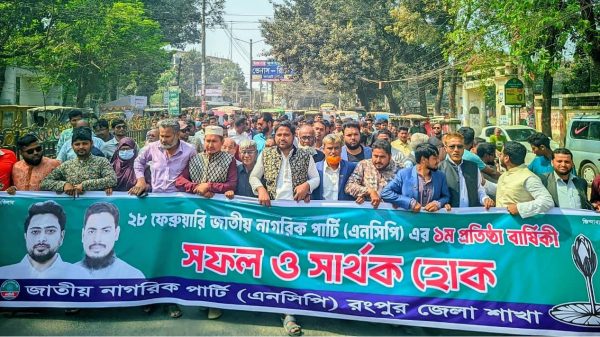 রংপুর অফিস জাতীয় নাগরিক পার্টি-এনসিপি’র প্রথম প্রতিষ্ঠা বার্ষিকী উপলক্ষে রংপুরে র্যালী হয়েছে। শনিবার (২৮ ফেব্রুয়ারী) দুপুরে এনসিপি জেলা আহ্বায়ক আল মামুনের নেতৃত্বে রংপুর জিলা স্কুল থেকে র্যালীটি বের হয়ে read more