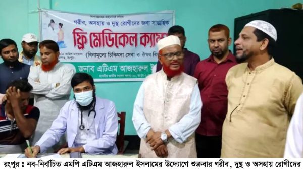 রংপুর অফিস রংপুরে গরীব, দুস্থ ও অসহায় রোগীদের সাপ্তাহিক বিনামূল্যে চিকিৎসা ক্যাম্প অনুষ্ঠিত হয়েছে। শুক্রবার (২৭ ফেব্রুয়ারী) সকালে তারাগঞ্জ ও/এ কামিল মাদ্রাসা প্রাঙ্গনে এর উদ্বোধন করেন, রংপুর-২ আসনের নব-নির্বাচিত read more