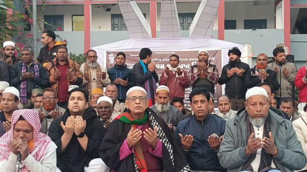 তন্ময় দেবনাথ রাজশাহীঃ রাজশাহী জেলার গোদাগাড়ী উপজেলাধীন ৬ নং মাটিকাটা ইউনিয়ন বিএনপির আয়োজনে সাবেক তিনবারের প্রধানমন্ত্রী, বিএনপি চেয়ারপারসন ও দেশনেত্রী বেগম খালেদা জিয়ার বিদেহী আত্মার মাগফিরাত কামনায় একটি দোয়া মাহফিল read more
