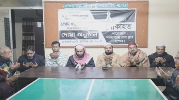 মতিন গাজীঃ তিন বাবের সাবেক প্রধানমন্ত্রী ও বিএনপি চেয়ারপারসন বেগম খালেদা জিয়ার রূহের মাগফিরাত কামনায় অভয়নগরে দোয়া অনুষ্ঠিত হয়েছে। নওয়াপাড়া প্রেসক্লাবে আয়োজনে বৃহস্পতিবার (৮ জানুয়ারি) মাগরিববাদ প্রেসক্লাবের সভাকক্ষে এ দোয়া read more