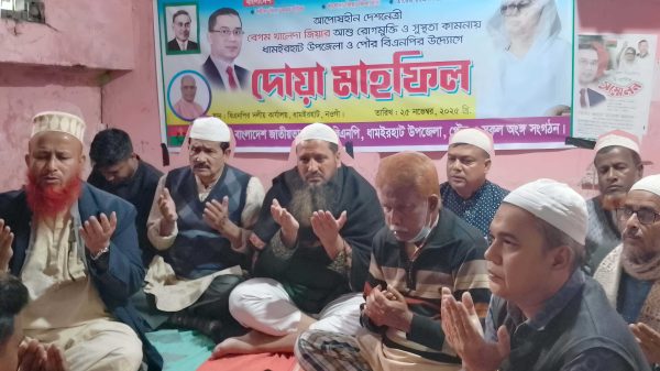 ধামইরহাট (নওগাঁ) প্রতিনিধিঃ নওগাঁর ধামইরহাটে উপজেলা, পৌর বিএনপি ও অঙ্গ সংগঠনের উদ্যোগে সাবেক প্রধানমন্ত্রী ও বিএনপির চেয়ারপার্সন বেগম খালেদা জিয়ার আশু রোগ মুক্তি ও সুস্থ্যতা কামনায় দোয়া মাহফিল অনুষ্ঠিত হয়েছে। read more