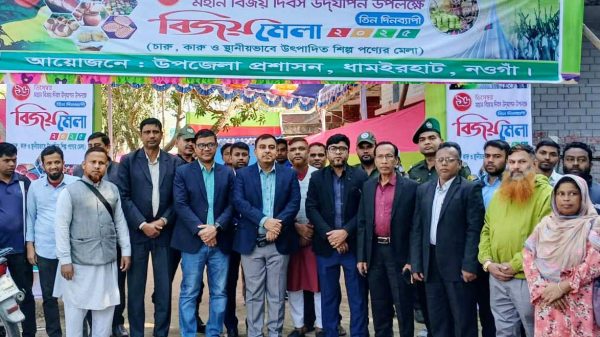 ধামইরহাট (নওগাঁ) প্রতিনিধিঃ নওগাঁর ধামইরহাটে উপজেলা প্রশাসনের আয়োজনে মহান বিজয় দিবস উদযাপন উপলক্ষে ৩ দিন ব্যাপী চারু,কারু ও স্থানীয়ভাবে উৎপাদিত পণ্যে নিয়ে বিজয় মেলার শুভ উদ্বোধন ও আলোচনা সভা অনুষ্ঠিত read more