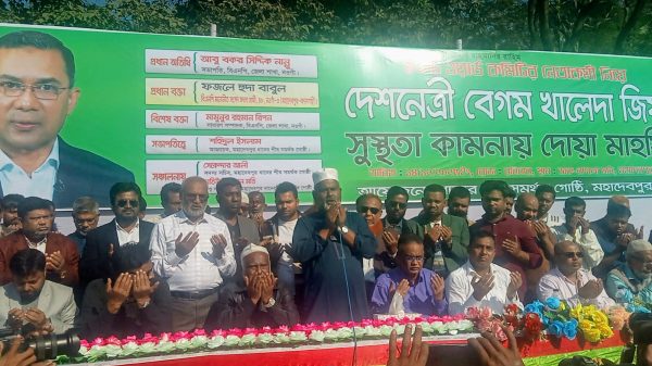 নওগাঁ প্রতিনিধি: বিএনপি চেয়ারপারসন ও সাবেক প্রধানমন্ত্রী খালেদা জিয়ার আশু রোগমুক্তি ও সুস্থতা কামনায় নওগাঁর মহাদেবপুরে দোয়া মাহফিল অনুষ্ঠিত হয়েছে। দুপুরে উপজেলা ডাক বাংলো মাঠে ধানের শীষ সমর্থক গোষ্ঠী আয়োজনে read more