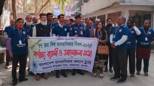 মতিন গাজীঃ আন্তর্জাতিক মানবাধিকার দিবস উপলক্ষে বাংলাদেশ মানবাধিকার কমিশন অভয়নগর শাখার উদ্যোগে সমাবেশ ও শোভাযাত্রা অনুষ্ঠিত হয়েছে। গত ১০ ডিসেম্বর (বুধবার) সকাল ১০টায় নওয়াপাড়ায় আয়োজনটি অনুষ্ঠিত হয়। সমাবেশে উপস্থিত ছিলেন—অভয়নগরের read more