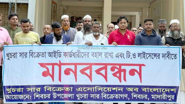 নাজমুল হোসেন লাবলু, শিবচর, মাদারীপুরঃ মাদারীপুরের শিবচরে খুচরা সার বিক্রেতা আইডি কার্ডধারীদের লাইসেন্স বহাল রাখা এবং টি.ও লাইসেন্সের দাবিতে মানববন্ধন অনুষ্ঠিত হয়েছে। রবিবার (৩০ নভেম্বর) দুপুর ১২টার দিকে উপজেলা নির্বাহী অফিসারের read more